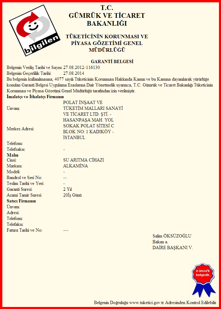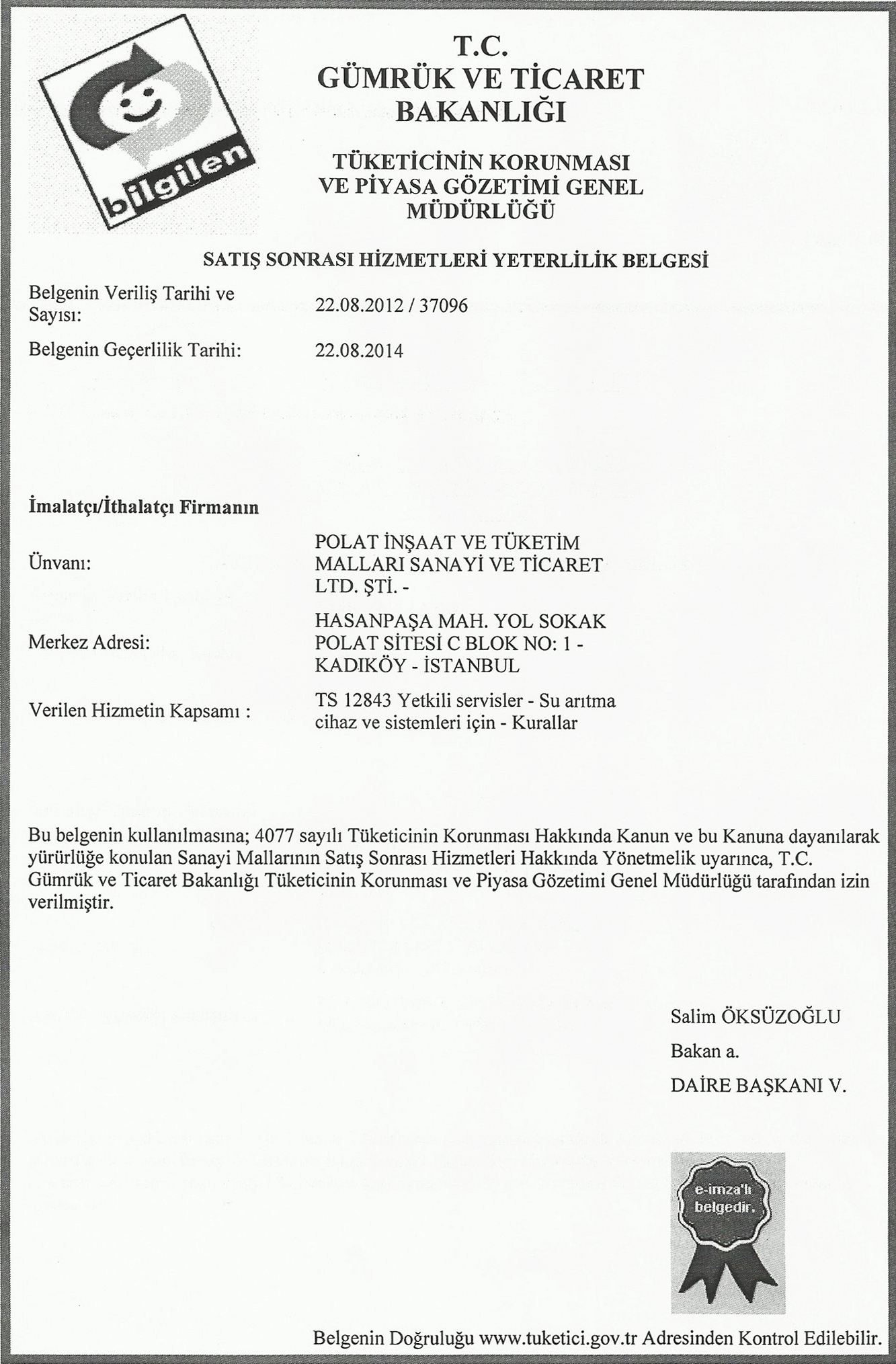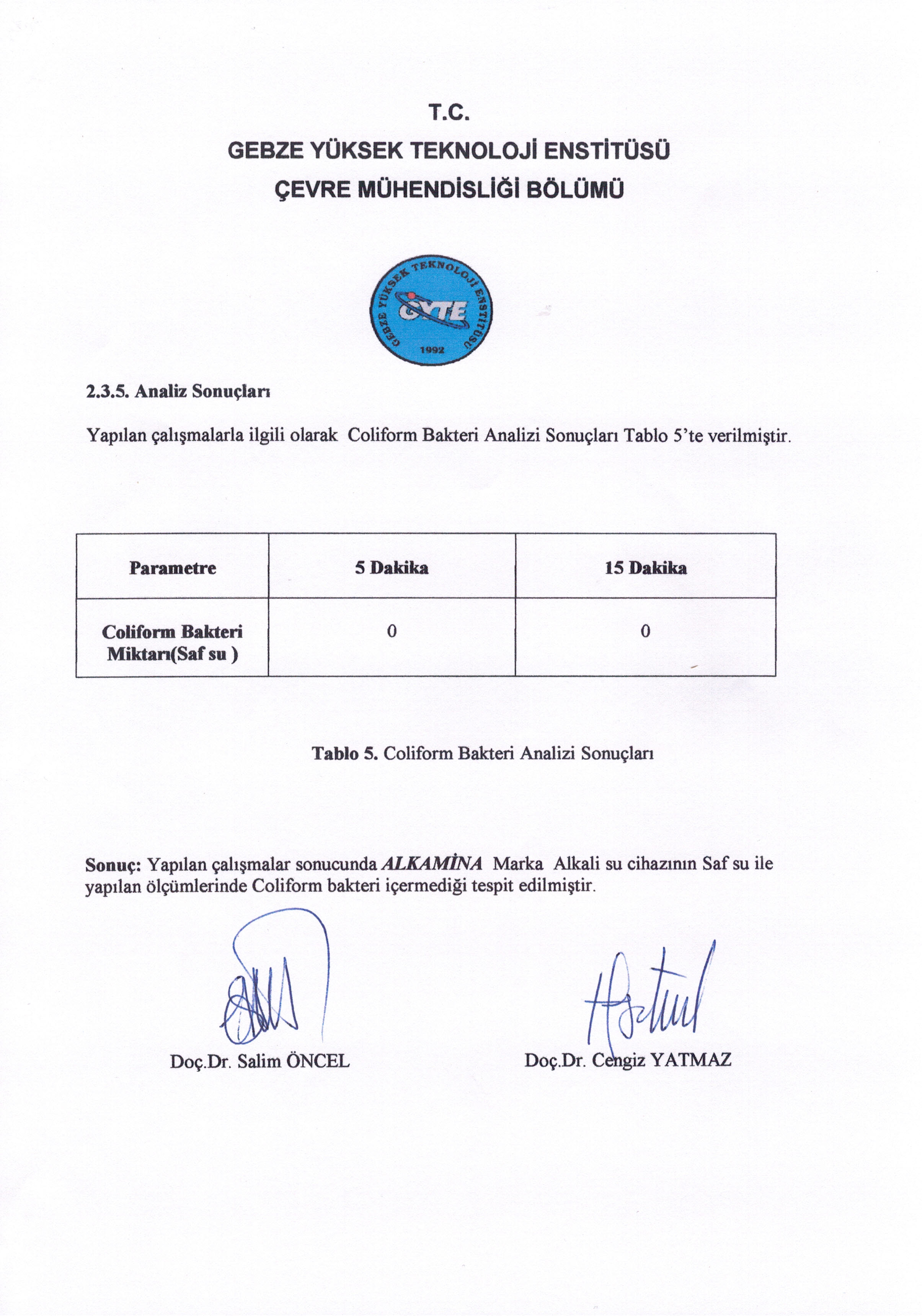 Türkiye de bir çok sertifika ve analiz raporlarının yanında